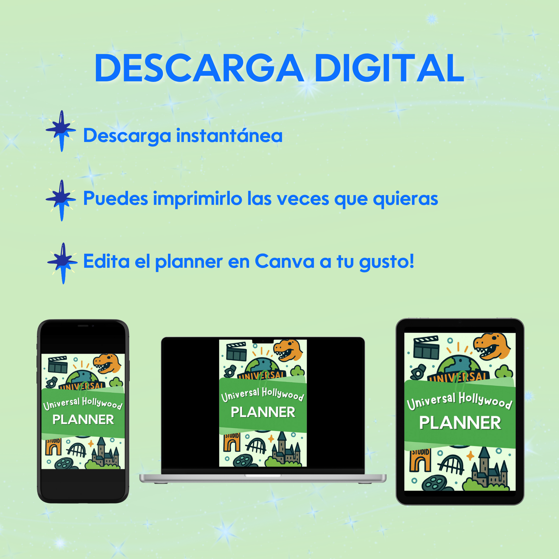 Nuestro Universal Hollywood Planner, un documento digital imprimible y editable en Canva, es la herramienta perfecta para organizar cada detalle de tu viaje a Universal California.